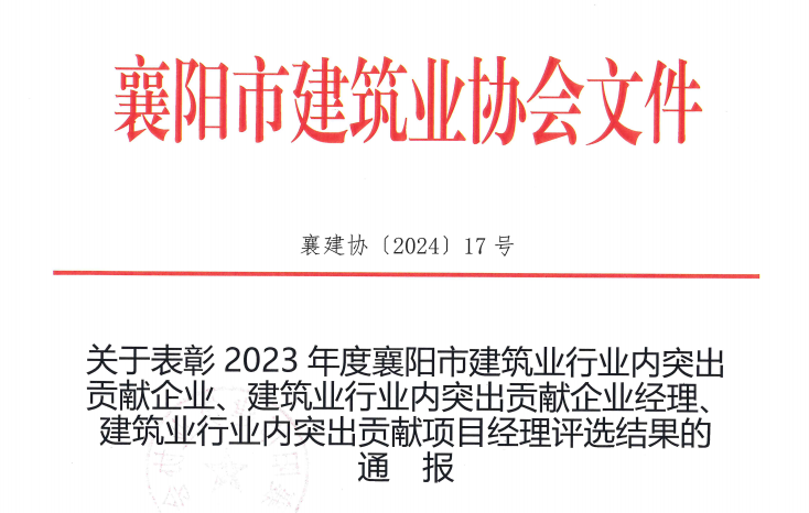關(guān)于表彰2019年度襄陽市建設(shè)工程“隆中杯”獎(jiǎng)(市結(jié)構(gòu)優(yōu)質(zhì)工程)的通報(bào)