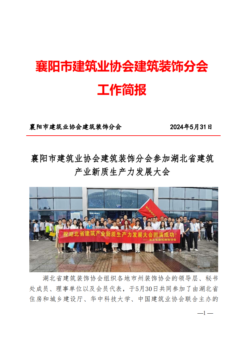 湖北省建筑裝飾協(xié)會組織各地市州裝飾協(xié)會的領(lǐng)導(dǎo)層、秘書處成員、理事單位以及會員代表,于5月30日共同參加了由湖北省住房和城鄉(xiāng)建設(shè)廳、華中科技大學(xué)、中國建筑業(yè)協(xié)會聯(lián)合主辦的湖北省建筑產(chǎn)業(yè)新質(zhì)生產(chǎn)力發(fā)展大會建筑業(yè)博覽會觀摩活動,旨在匯聚行業(yè)智慧,推動湖北省建筑產(chǎn)業(yè)的高質(zhì)量發(fā)展。襄陽市建筑業(yè)協(xié)會建筑裝飾分會會長黃祝清亦受邀參加。